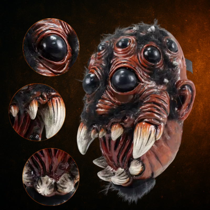 Avec sa structure de toile et ses détails d’araignée, le masque ARRAIGNYLI transforme votre visage en cauchemar arachnéen — parfait pour Halloween et scènes d’horreur.