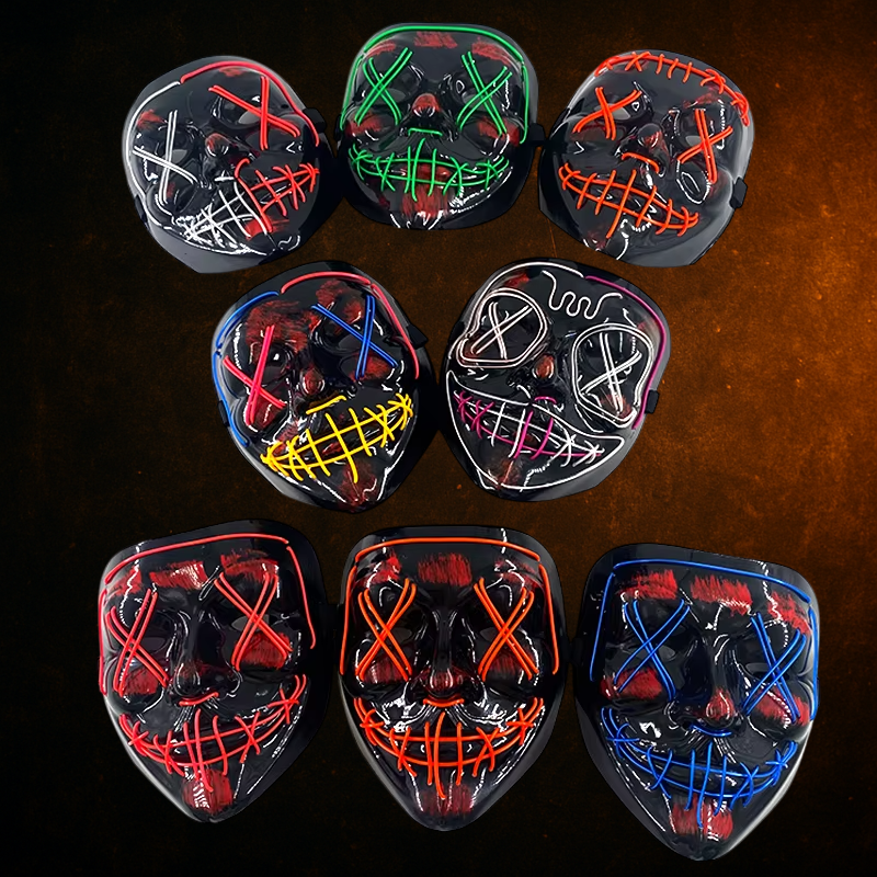 Le masque LED PURGYLI combine une esthétique terrifiante à des fils lumineux LED intégrés. Dans l’obscurité, il s’illumine et attire tous les regards — une véritable arme de scène pour Halloween.